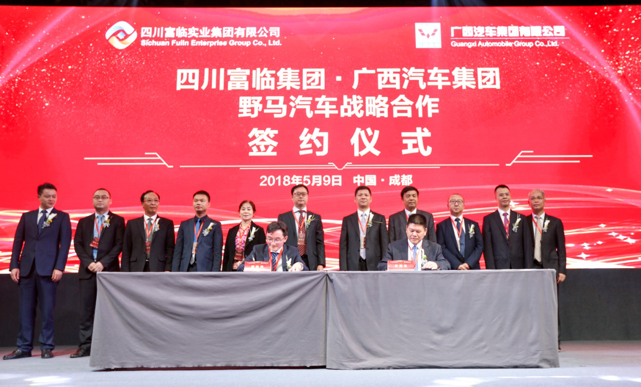 共創美好,未來無限。5月9日,廣西汽車集團與四川富臨集團在成都簽署野馬汽車戰略合作意向書。四川富臨集團與廣西汽車集團將在“野馬汽車”平臺基礎上開展戰略合作。在四川富臨實業集團有限公司總經理李億中先生和廣西汽車集團有限公司總裁袁智軍先生共同見證下,由富臨集團董事四川野馬汽車股份有限公司總經理譚建偉先生與廣西汽車集團有限公司總裁助理柳州五菱汽車工業公司副總經理李薇旻先生代表兩家公司簽署協議。