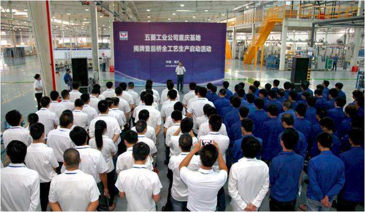 2015年8月18日上午,廣西汽車集團所屬公司柳州五菱汽車工業(yè)有限公司(簡稱:五菱工業(yè)公司)重慶基地揭牌暨后橋全工藝生產(chǎn)啟動活動在重慶舉行。五菱工業(yè)公司副總經(jīng)理李薇旻、重慶基地項目團隊、客戶代表等參加活動并見證重慶基地揭牌。
