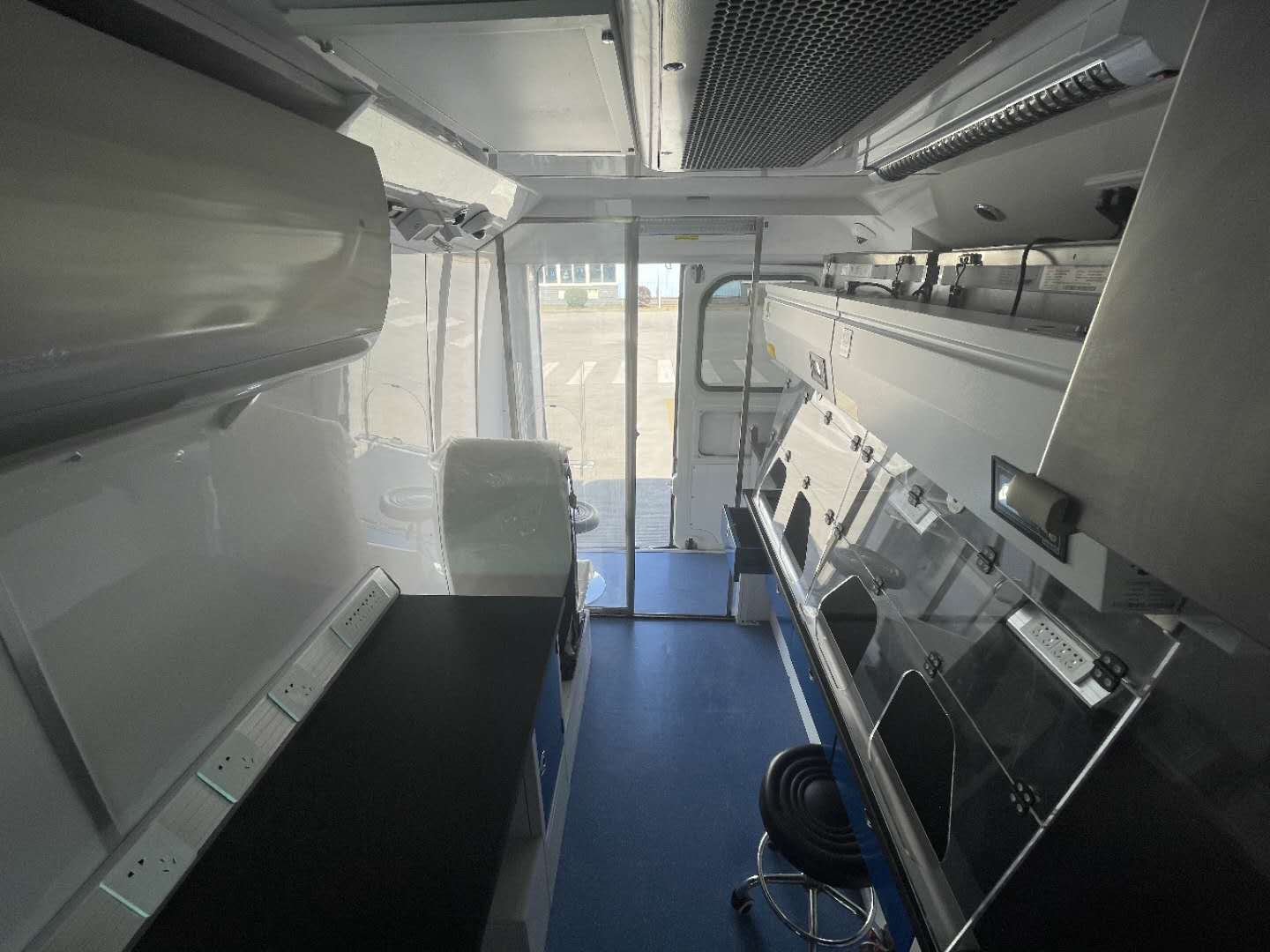 五菱發(fā)熱診療哨點(diǎn)車(chē)嚴(yán)格按照生物安全實(shí)驗(yàn)室P2+要求進(jìn)行研發(fā)設(shè)計(jì),擁有負(fù)壓系統(tǒng)、獨(dú)立的樣本傳遞系統(tǒng)、排水系統(tǒng)、獨(dú)立空調(diào)、醫(yī)療廢水廢物收納處理系統(tǒng)等,可搭載血常規(guī)檢測(cè)儀、POCT(CRP)儀、微型臺(tái)式振蕩器、臺(tái)式高速離心機(jī)等相關(guān)儀器,能實(shí)現(xiàn)15分鐘內(nèi)檢測(cè),在關(guān)卡、偏遠(yuǎn)地區(qū)等交通不便、設(shè)備不齊全等環(huán)境下亦可快速完成檢測(cè)。